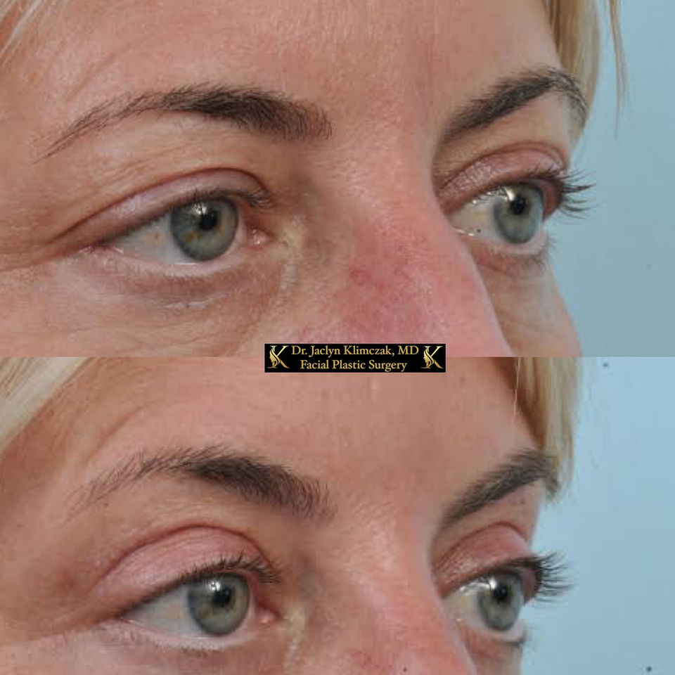 A Lower blepharoplasty can be performed using the transconjunctival approach (incision on the inner lower lid) or a subciliary approach (incision in the natural crease under the lash line). Depending on the degree of laxity, muscle prominence and fatty pad protrusion your surgeon will evaluate and determine the best approach to attain the most natural and beautiful results.